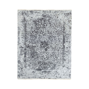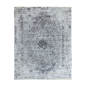 8'x10'1" Hand Knotted Grey Broken Persian Design Wool And Pure Silk Oriental Rug FWR372348
