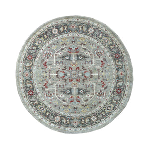 5'9"x5'9" Gray Peshawar With Heriz Design Vibrant Wool Round Hand Knotted Oriental Rug FWR403134