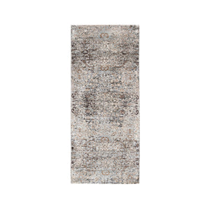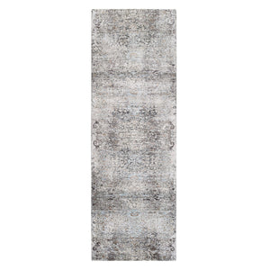 2'6"x10' Gray, Hand Knotted, Transitional Persian Influence Erased Medallion Design, Silk With Textured Wool, Oriental, Runner Rug FWR382242
