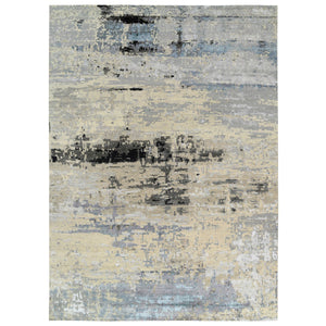 2'x3' Gray, Modern Abstract Design, Wool And Silk Hand Knotted, Mat Oriental Rug FWR383316