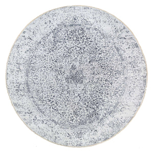 11'9"x11'9" Silver Gray, Hand Knotted Erased Persian Design, Wool And Pure Silk, Round Oriental Rug FWR384348