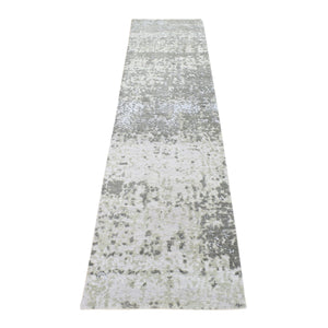 2'6"x10'4" Gray, Modern Abstract Design, Denser Weave, Hand Knotted Pure Wool Runner Oriental Rug FWR480738