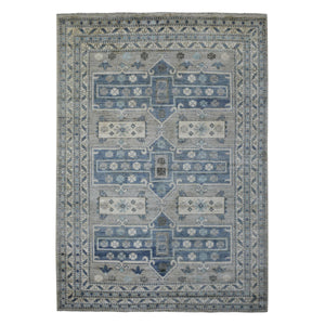 6'2"x8'7" Gray, Anatolian Design With Geometric Medallions, Supple Wool Hand Knotted, Oriental Rug FWR426750