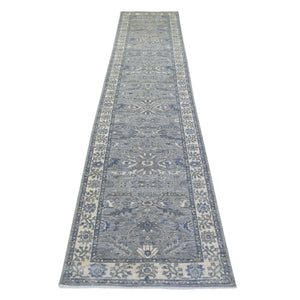 2'9"x15'1" Gray Natural Wool, Afghan Angora Oushak With Floral Pattern, Hand Knotted Runner Oriental Rug FWR425352