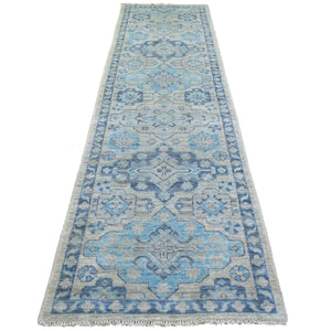 3'1"x11'9" Gray Hand Knotted, Anatolian Village Inspired With Geometric Medallion Design, Soft And Shiny Wool, Wide Runner Oriental Rug FWR427974