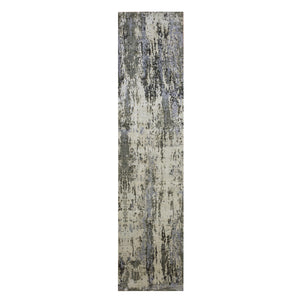 2'7"x10'3" Charcoal Gray Abstract Design Wool And Silk Denser Weave Persian Knot Hand Knotted Oriental Rug FWR450462