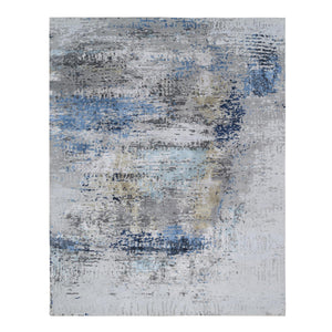 7'10"x10' Gray, Denser Weave Wool And Silk Hand Knotted, Modern Abstract Design Soft Pile, Oriental Rug FWR385104