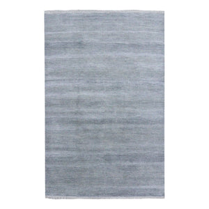 6'x9'2" Gray, Modern Grass Design Gabbeh, Densely Woven Wool And Silk Hand Knotted, Oriental Rug FWR474744