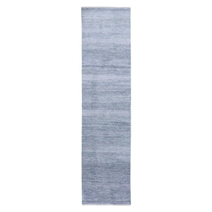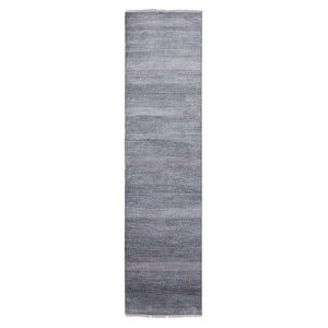 2'6"x10' Gray, Hand Knotted Modern Grass Design Gabbeh, Densely Woven Wool And Silk, Runner Oriental Rug FWR474804