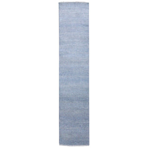 2'6"x9'10" Blue, Hand Knotted Modern Grass Design Gabbeh, Densely Woven Wool And Silk, Runner Oriental Rug FWR474858