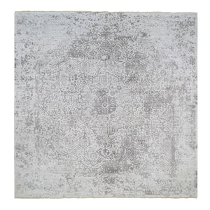 8'3"x8'3" Gray, Broken Persian Design, Hand Knotted Wool And Pure Silk, Square Oriental Rug FWR385926