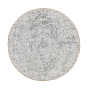 10'3"x10'3" Gray, Silk With Textured Wool Hand Knotted, Transitional Persian Influence Erased Medallion Design, Round Oriental Rug FWR386490