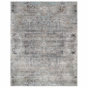 2'6"x20' Gray, Hand Knotted Transitional Persian Influence Erased Medallion Design, Silk With Textured Wool, Xl Runner Oriental Rug FWR386544