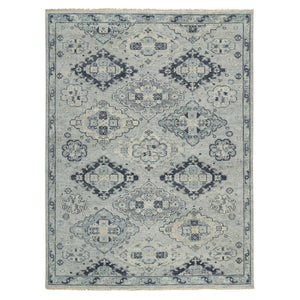 8'1"x10'4" Silver Gray Angora Oushak All Over Motifs Natural Dyes, Afghan Wool Hand Knotted Oriental Rug FWR431034