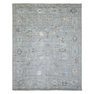 8'10"x11'10" Silver Gray, Pure Wool Hand Knotted, Anatolian Design Supple Collection Thick And Plush, Oriental Rug FWR387120
