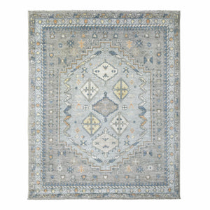 8'x9'10" Light Gray, Anatolian Village Inspired Geometric Design Natural Dyes, Natural Wool Hand Knotted, Oriental Rug FWR431190