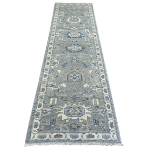2'9"x11'5" Stone Gray Extra Soft Wool Hand Knotted, Fine Peshawar With All Over Design Densely Woven, Runner Oriental Rug FWR433212