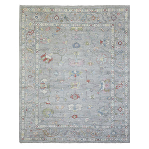 8'x10'7" Light Gray, Afghan Angora Oushak With All Over Colorful Flowers Natural Dyes, Pure Wool Hand Knotted, Oriental Rug FWR434292