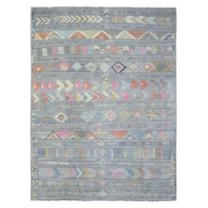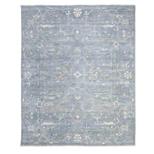 8'1"x10'1" Light Gray, Hand Knotted Afghan Angora Oushak, Natural Dyes Soft Wool, Oriental Rug FWR434094