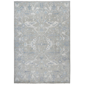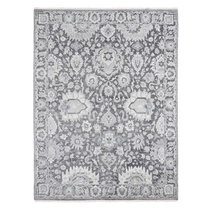 7'10"x10'4" Gray, Silk With Textured Wool, Hand Knotted, Oushak Influence, Oriental Rug FWR482352