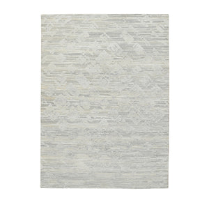 5'1"x7'3" Light Gray, Modern Design, Hand Spun Undyed Natural Wool, Hand Knotted, Oriental Rug FWR388194