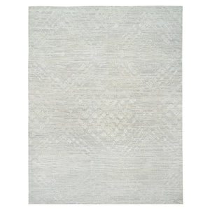 9'x11'9" Light Gray, Hand Knotted Wool And Silk, Transitional/modern Design Tone On Tone, Oriental Rug FWR482724