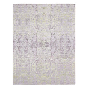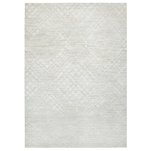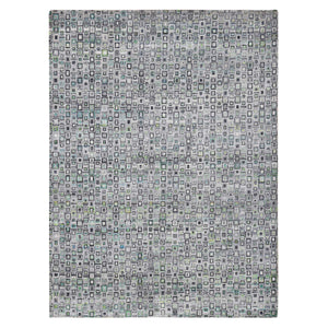9'x12'3" Light Gray, Sari Silk With Textured Wool, Psefas Square Design Hand Knotted, Oriental Rug FWR482730