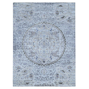 9'x12' Silver Gray, The Maharaja Design, Silk With Textured Wool Hand Knotted, Oriental Rug FWR482706