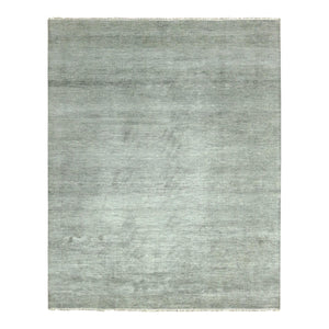 8'x10'2" Ash Gray, Hand Knotted Grass Design, Densely Woven Tone On Tone, Soft To The Touch Wool And Silk, Oriental Rug FWR475902