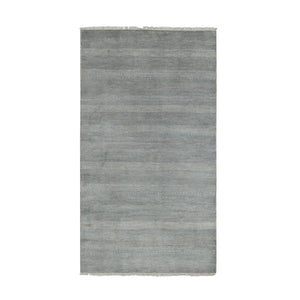 3'10"x7' Charcoal Gray, Tone On Tone Soft To The Touch, Wool And Silk Hand Knotted, Grass Design Dense Weave, Wide Runner Oriental Rug FWR476022