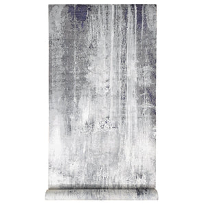 8'1"x23'10" Misty Gray With Touches Of Ivory, Modern Abstract Design, Wool And Silk Hand Knotted, Wide And Long Super Rare Gallery Size Oriental Rug FWR483858