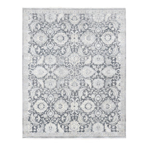 8'x10' Light Gray, Pure Silk With Wool Hand Knotted, Broken Kashan Design, Oriental Rug FWR392658