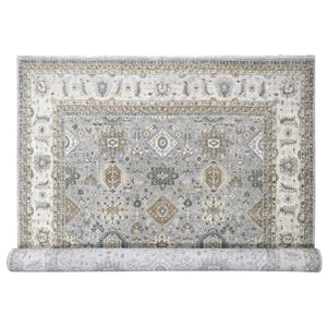 10'x14'5" Cloud Gray, The Cane Design, Pure Silk With Textured Wool, Hand Knotted, Oriental Rug FWR485112