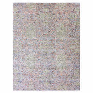 2'9"x19'9" Rustic Gray, Persian Knot, Abstract With Mosaic Design, Wool And Silk, Hand Knotted, Dense Weave, Xl Runner Oriental Rug FWR507102
