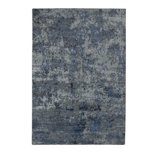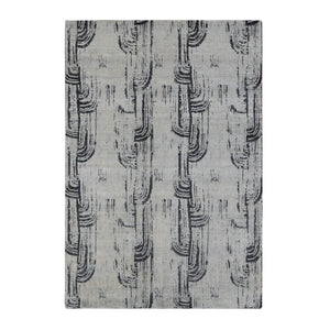 6'x8'10" Cloud Gray, Hi-low Pile, Abstract Design, Wool And Silk, Soft To The Touch, Hand Knotted, Oriental Rug FWR485880