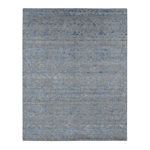 9'x11'7" Cadet Gray, Silk With Textured Wool, Mamluk Design, Hand Knotted, Oriental Rug FWR522450