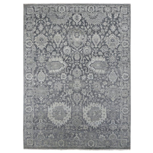 9'x11'10" Medium Gray, Hand Knotted, Oushak Influence, Silk With Textured Wool, Oriental Rug FWR522468