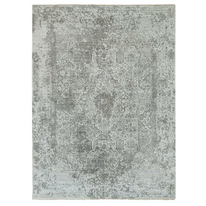 9'x12' Gainsboro Grey, Wool And Silk, Hand Knotted, Broken And Erased Persian Design, Oriental Rug FWR395238
