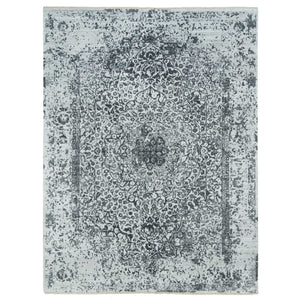 10'x14' Gainsboro, Hand Knotted, Wool And Silk, Broken And Erased Persian Design, Oriental Rug FWR395244