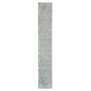 2'6"x15'10" Goose Gray, Broken And Erased Persian Design, Hand Knotted, Wool And Silk, Xl Runner Oriental Rug FWR395340