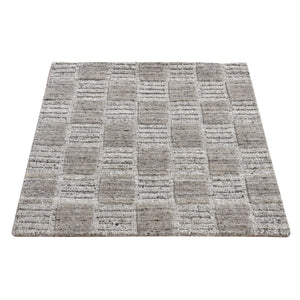 2'x2' Cloud Gray, Modern Checkers Design, Hand Loomed, 100% Wool, Sample Fragment, Square Oriental Rug FWR524886
