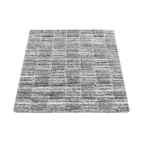 2'1"x2'3" Fossil Gray, Modern Patchwork Design, Hand Loomed, 100% Wool, Sample Fragment, Squarish, Oriental Rug FWR524898