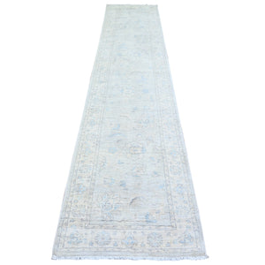 4'x12'2" Antique Pewter Gray, Faded Colors White Wash Peshawar, 100% Wool, Hand Knotted, Natural Dyes, Runner Oriental Rug FWR449718