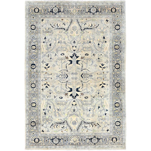 9'x12'2" Gainsboro Gray, Afghan Peshawar With Serapi Heriz Design, Vegetable Dyes, 100% Wool, Hand Knotted, Oriental Rug FWR513618