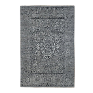 6'x9' Battleship Gray, Broken Persian Erased Design, Silk With Textured Wool, Hand Knotted, Oriental Rug FWR525054