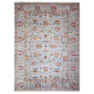 8'9"x12'1" Misty Gray, Sultani Motif With Tabriz Shah Abbas Flower Design Featuring A Plain Border, 100% Wool, Hand Knotted, Oriental Rug FWR448224