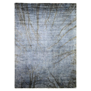 8'10"x12'1" Blue Gray, Modern Tree In The Dusk Design, 100% Wool, Natural Dyes, Tone On Tone, Hand Knotted, Oriental Rug FWR447774