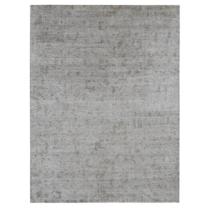 9'x12'2" Cloud Gray, Silk With Textured Wool, Transitional Tone On Tone Borderless Jewelry Design, Hand Knotted, Oriental Rug FWR522564