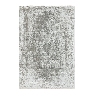 6'x9' Grey Broken Persian Design Wool And Pure Silk Hand Knotted Oriental Rug FWR350034