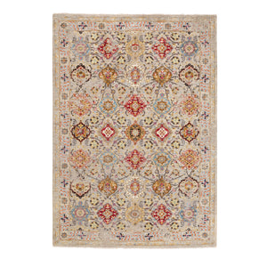 6'1"x9' The Sunset Rosettes Wool And Pure Silk Hand Knotted Oriental Rug FWR350658